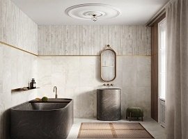 Cadence nawiązuje do surowego piękna natury – kamienia, betonu i drewna – ale w lekkiej, nowoczesnej interpretacji. Dominują tu spokojne odcienie beżu, szarości i barw ziemi, które wprowadzają do wnętrza równowagę i wizualny komfort.